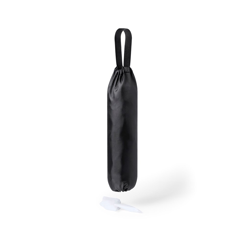 Recycling-Tasche zur Aufbewahrung von Plastiktüten. Aus weichem 210D Polyester in kräftigen Farben. Mit Öffnung an der Ober- und Unterseite und farblich passender Schlaufe zum Aufhängen.