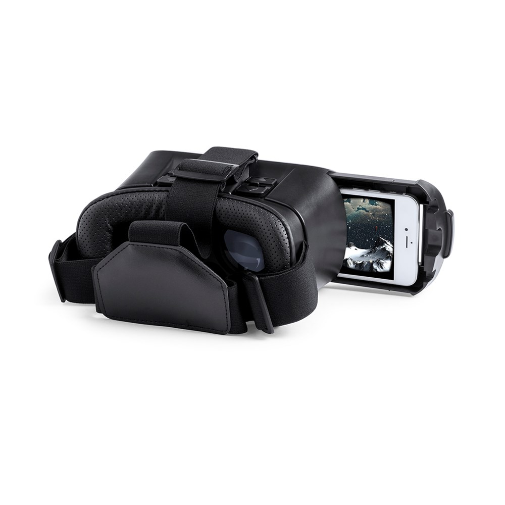 Virtual-Reality-Brille mit verstellbaren Gläsern und Halterung für alle Arten von Smartphones. Mit 3,5-mm-Klinkenstecker und verstellbaren, elastischen Bändern für die Anbringung am Kopf, sowie Polsterung der Augenpartie für einen angenehmen Tragekomfort. Inklusive Mikrofaser-Reinigungstuch für die Gläser. Präsentiert in einer attraktiven Designbox.
