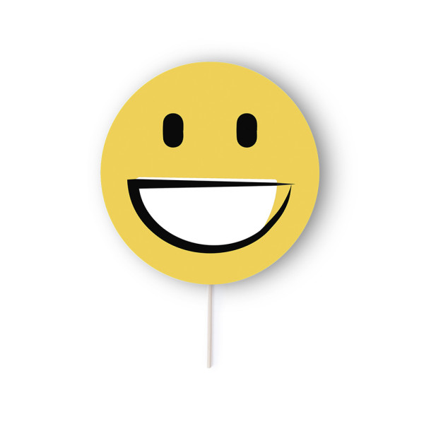 Selfie Pai Pai in lustigen Emoji-Designs und in einer auffälligen gelben Farbe. Aus hochwertigem Papier, mit Holzgriff. Erhältlich in den Designs Herz, Sonnenbrille, Augenzwinkern und Lächeln.