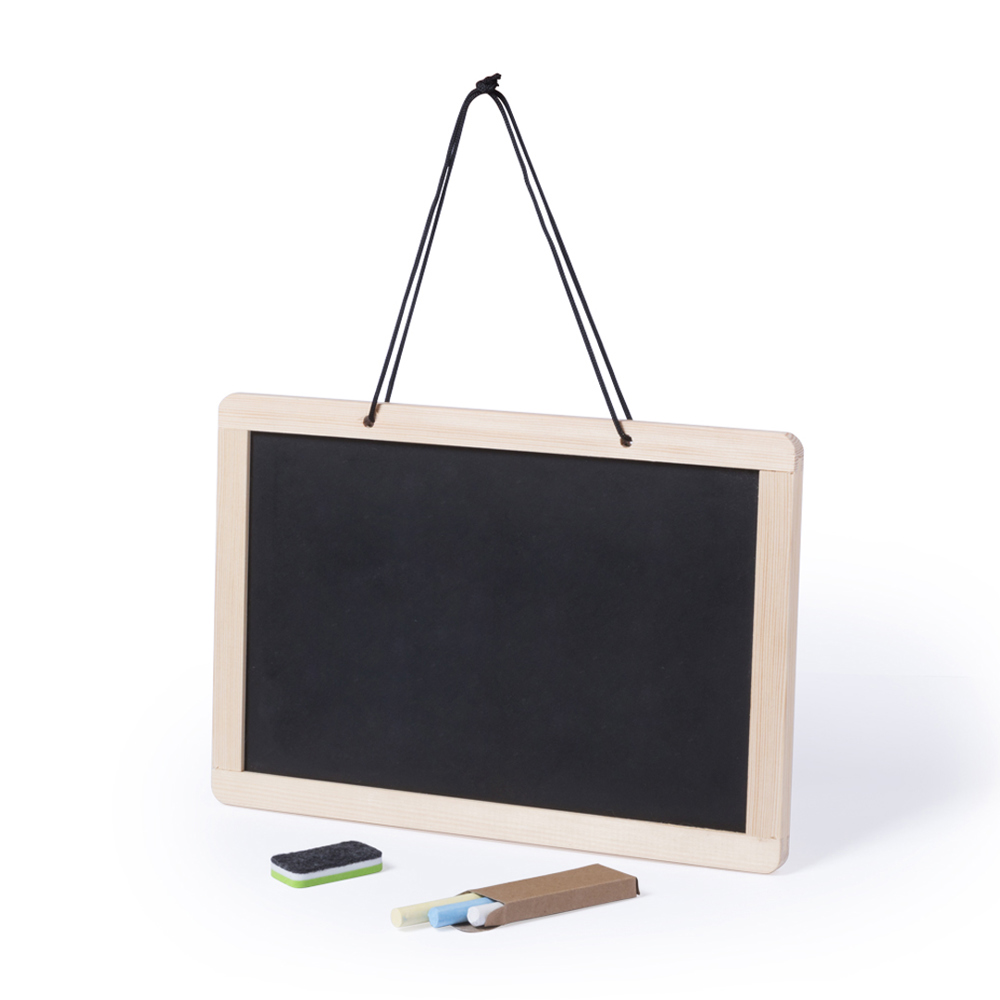 Beidseitig nutzbare Tafel zum Aufhängen, mit 2 verschiedenen Seiten: traditionelle Kreidetafel mit 3 Kreidestücken auf einer und Whiteboard mit Marker auf der anderen Seite. Mit doppelseitigem Radiergummi für Kreide und Marker.