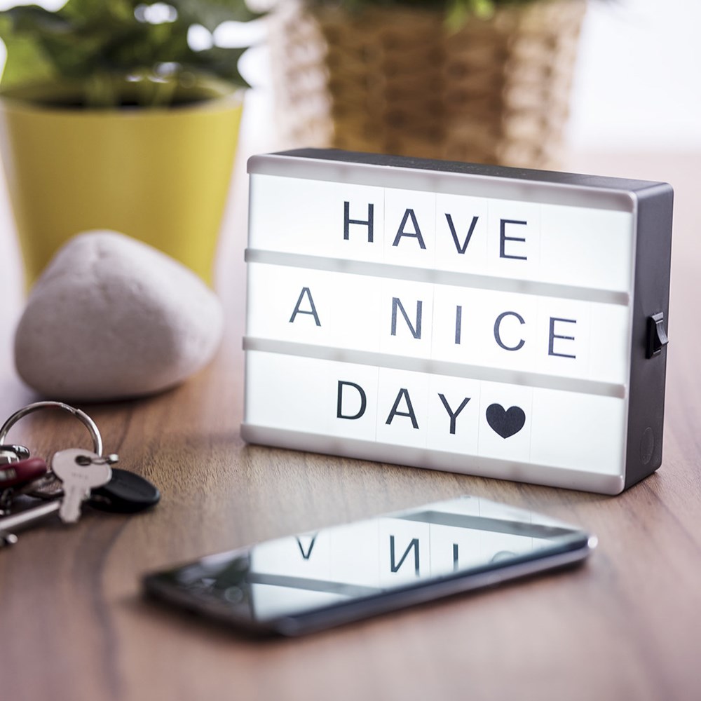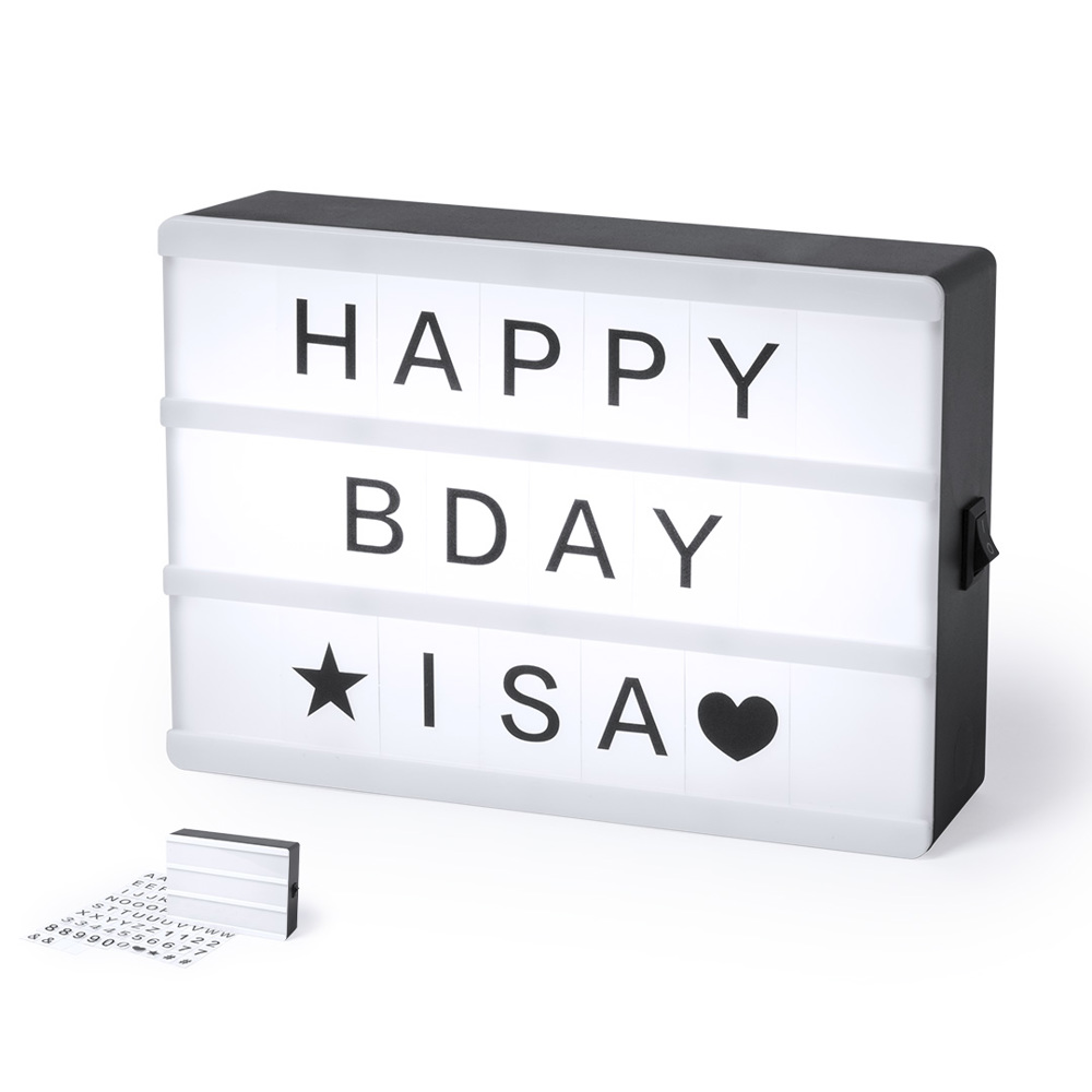 Leuchtkasten (Lightbox) mit Beleuchtung durch 4 LEDs und ON/OFF-Schalter. Inklusive 82 Buchstaben, Zahlen und Zeichen. Batteriebetrieben - 4 x AAA nicht inklusive. Präsentiert in einer attraktiven Designbox.