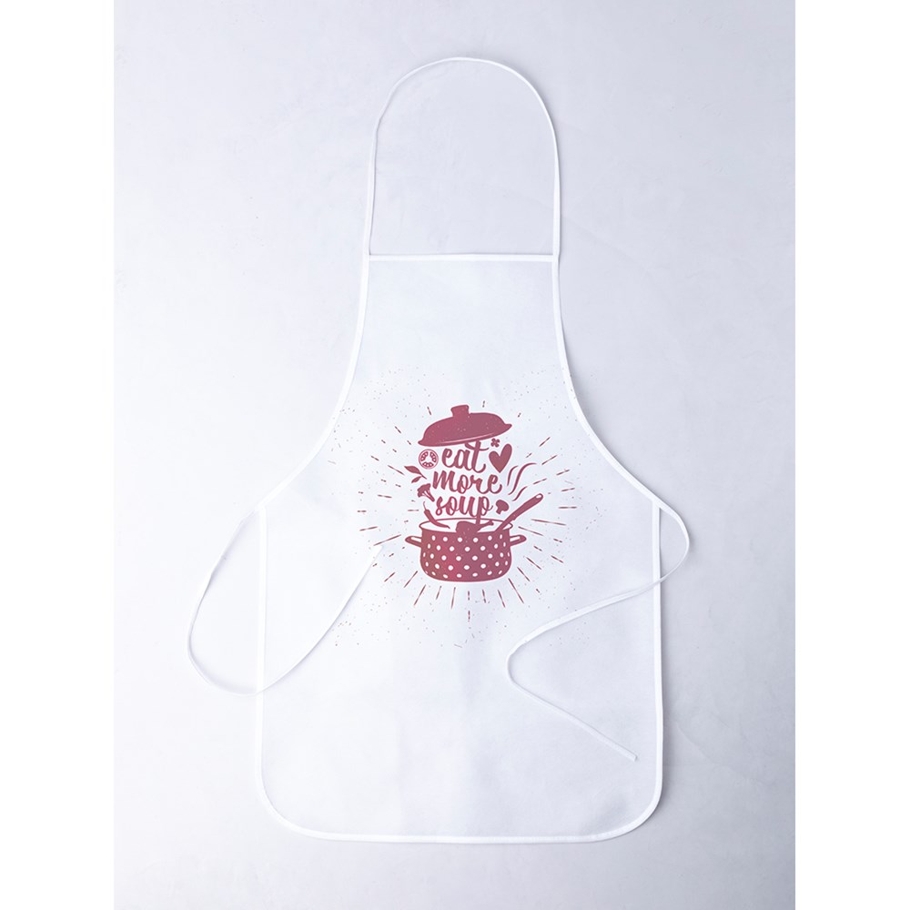 Non-Woven-Schürze aus resistentem Faservlies (95 g/m2). Mit großer Druckfläche - 100 % personalisierbar und speziell entworfen für den Sublimationsdruck. Mit farblich passenden Bändern zum Einstellen.