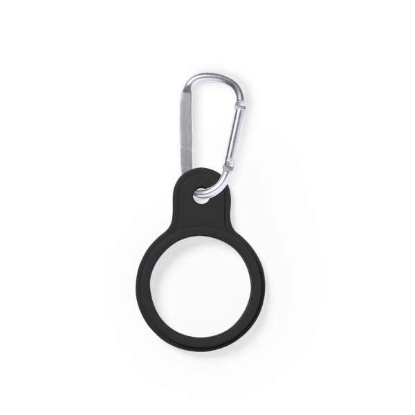 Origineller Aufhänger für den Transport einer Flasche. Aus widerstandsfähigem Silikon, mit Aluminiumkarabiner. Erhältlich in einer breiten Farbpalette, mit einer glatten Seite zum Bedrucken. Gebrauchsanweisung in Englisch und Spanisch erhältlich.