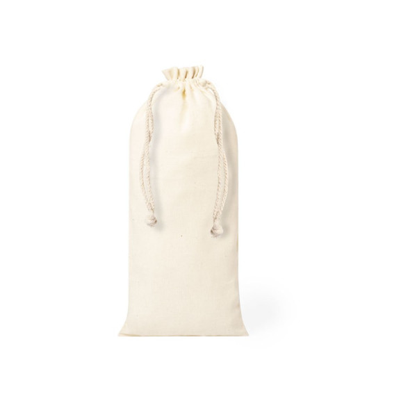 Tasche aus der Naturlinie, aus Baumwolle 105g/m2.Größe 12x33 cm, mit genähter Verarbeitung und selbstschließenden Schnüren aus Baumwolle. Speziell für die Verpackung von Flaschen und Thermoskannen hergestellt.