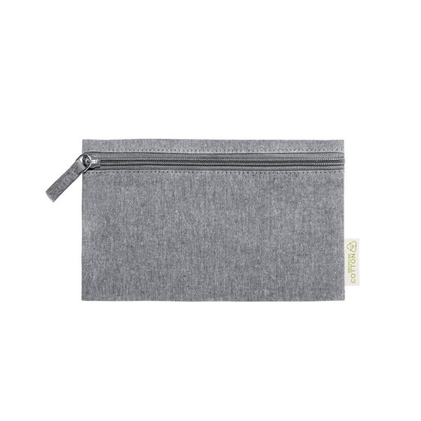 Nature Line Kosmetiktasche aus recycelter Baumwolle. Hauptfach mit Reißverschluss und Anhänger, mit Etikett aus recycelter Baumwolle.