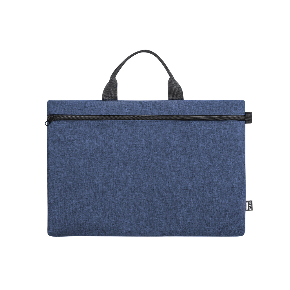 Dokumentenhalter der Natur Line und in widerstandsfähigem 600D RPET Melange-Effekt, hergestellt aus recyceltem Kunststoff, um die Wiederverwendung von Kunststoffabfällen zu fördern und zur Nachhaltigkeit des Planeten beizutragen. Schwarze Details und Hauptfach mit Reißverschluss. Stabile, passende Griffe und RPET-Plakette auf dem Außenetikett.