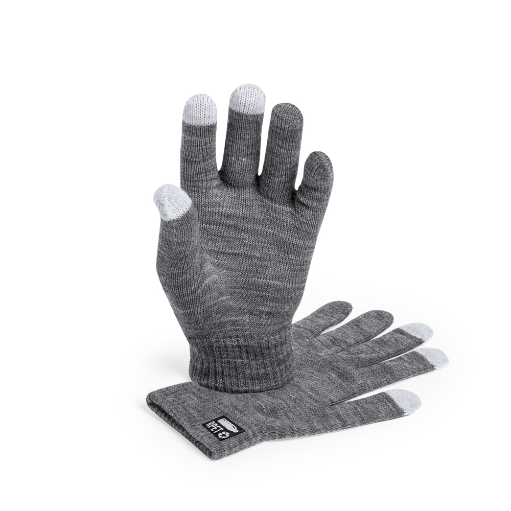 Praktisches Paar Natur Line-Handschuhe für Touchscreen-Geräte. Hergestellt aus warmem und weichem RPET-Polyester-Finish, das aus recyceltem Kunststoff hergestellt wird, um die Wiederverwendung von Kunststoffabfällen zu fördern und zur Nachhaltigkeit des Planeten beizutragen. Berührungsfunktion auf Mittelfinger, Zeigefinger und Daumen. Einheitsgröße für Erwachsene, mit RPET-Plakette auf dem Außenetikett.