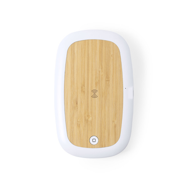 Nature Line Sterilisator-Box, mit Bambus-Ladefläche. Ultraviolettes Licht Typ C, mit im Deckel integriertem kabellosem 5W-Ladegerät für Smartphone. Speziell entwickelt für die Beseitigung von Mikroorganismen und Bakterien in Alltagsgegenständen wie Smartphones, Schlüsseln, Brillen, Masken, Kopfhörern, Smartwatch... Gefertigt aus widerstandsfähigem ABS-Material mit mattem Finish und präsentiert in einer attraktiven, individuellen Designbox. Einfach zu bedienen, einfach das Objekt in die Box einlegen. Lampenleistung 1W, Wellenlänge 270-280 nm, Stromversorgung über 1m langes USB Typ C Kabel mit passender Farbe. Sterilisationszeit von 5 und 10 Minuten mit Auto-Off-Funktion. Benutzerhandbuch in Englisch und Spanisch verfügbar. CE-, RoHS- und Keimtötungszertifikat verfügbar.