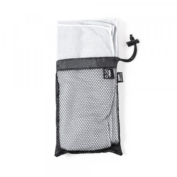 Linie "Natur" saugfähiges Handtuch. Aus RPET 160g/m2, hergestellt aus recyceltem Kunststoff, um die Wiederverwendung von Kunststoffabfällen zu fördern und einen Beitrag zur Nachhaltigkeit unseres Planeten zu leisten. Größe 50x100 cm, präsentiert in einem individuellen RPET-Netzbeutel mit unbedruckter Rückseite und erhältlich in einer breiten Farbpalette. Mit RPET-Emblem auf dem Etikett.