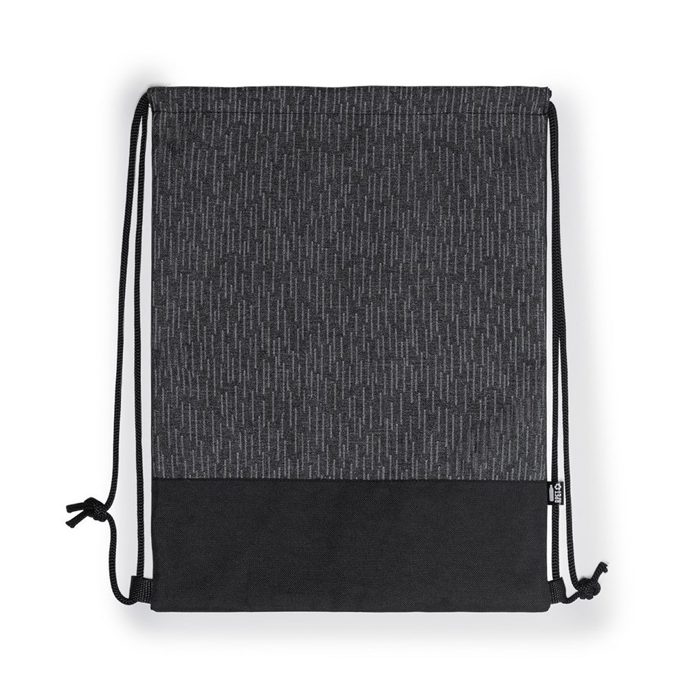 Linie "Natur" reflektierender Rucksack mit Kordelzug aus strapazierfähigem 600D RPET-Polyester. Hergestellt aus recyceltem Kunststoff, um die Wiederverwendung von Kunststoffabfällen zu fördern und die Nachhaltigkeit unseres Planeten zu unterstützen. In stilvoller schwarz-grauer Farbkombination, mit schwarzen Verschlussbändern und RPET-Emblem auf dem Etikett. Hergestellt aus hochreflektierenden Fäden und Millionen von Reflektionspigmenten, die auf dem Prinzip der Retroreflexion des Lichts basieren, einer Eigenschaft der Nachtsichtbarkeit, die in der Brechung des Lichts zurück zu seiner Ursprungsquelle besteht.