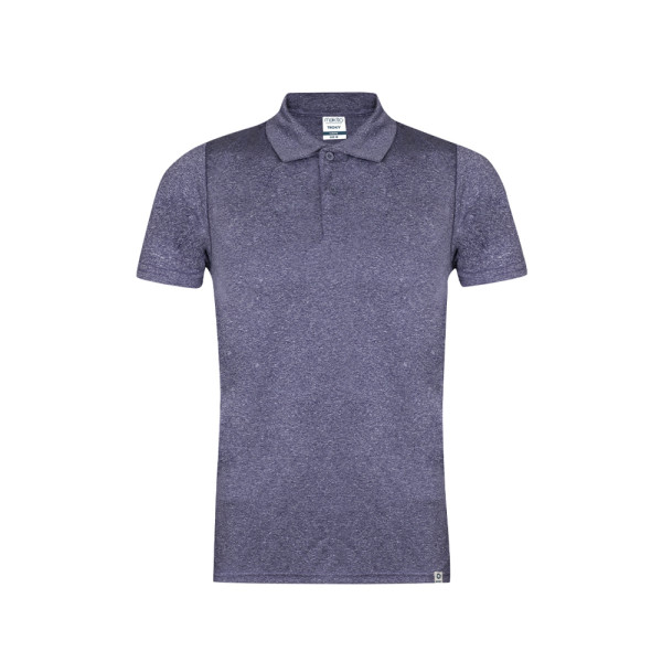 Technisches Unisex-Kurzarm-Poloshirt. Hergestellt aus 100 % recyceltem Polyestergewebe und in Melange-Effekt-Farbe. Mit einer Grammatur von 150 g/m2 ist es ein leichtes Kleidungsstück, ideal für Sport und Alltag. Sehr weicher Griff und moderner Schnitt. Zwei Ton-in-Ton-Knopfleisten. Atmungsaktiver Stoff, leicht zu waschen und schnell trocknend. Doppelnähte an Saum und Ärmeln sorgen für Langlebigkeit und Widerstandsfähigkeit bei intensiver Nutzung. Leicht ablösbares Etikett. Mit äußerem RPET-Etikett, das auf ein recyceltes Produkt hinweist. Erhältlich in den Größen XS, S, M, L, XL und XXL.