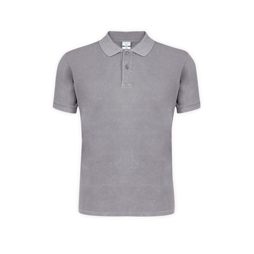 Unisex-Poloshirt mit kurzen Ärmeln und Jeans-Wasch-Effekt, der jedes Stück einzigartig und unwiederholbar macht. Elastische Kontrastdetails an Kragen und Ärmeln. Hergestellt aus 100% gekämmter Baumwolle, Ring Spun 180g/m2. Weicher Griff und moderner Schnitt. Zwei Ton-in-Ton-Knopfleisten. Doppelte Nähte am Saum und an den Ärmeln für mehr Haltbarkeit und Widerstandsfähigkeit bei intensiver Nutzung. Leicht ablösbares Etikett. Erhältlich in den Größen XS, S, M, L, XL und XXL.