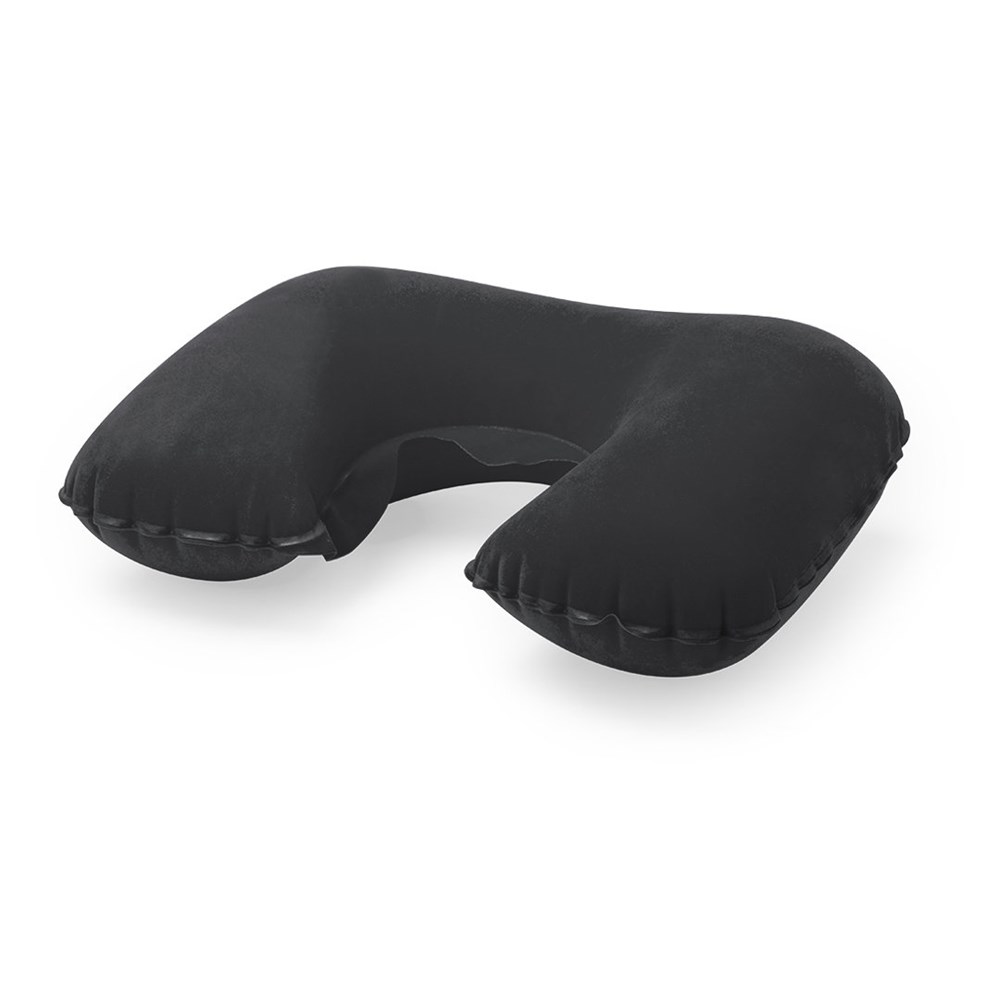 Aufblasbares Nackenkissen aus weichem Wildleder in verschiedenen lebendigen Farben.