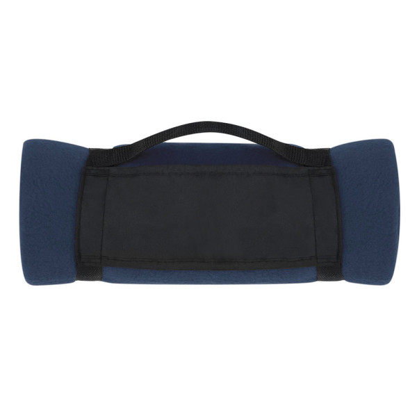 Decke 130 x 160 cm in verschiedenen hellen Farbtönen. Aus Polarfleece-Material von 200 g/m2 mit Antipilling-Behandlung und Tragegriff mit Klettverschluss aus weichem Polyester.