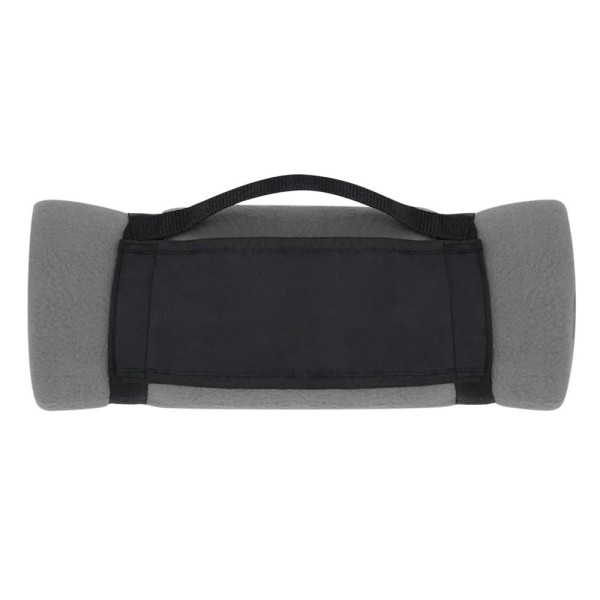Decke 130 x 160 cm in verschiedenen hellen Farbtönen. Aus Polarfleece-Material von 200 g/m2 mit Antipilling-Behandlung und Tragegriff mit Klettverschluss aus weichem Polyester.