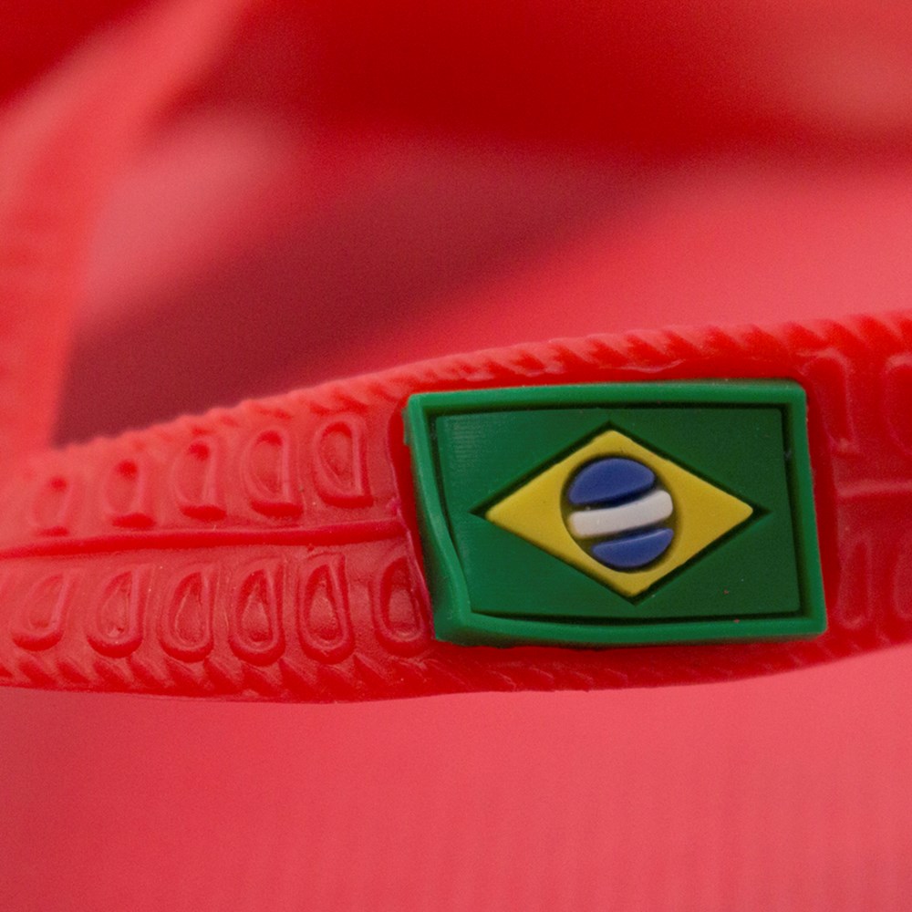 Flip Flops mit robuster EVA-Sohle und PVC-Riemen mit der brasilianischen Flagge. Erhältlich in verschiedenen lebendigen Farben und den Größen 36-38 und 42-44.