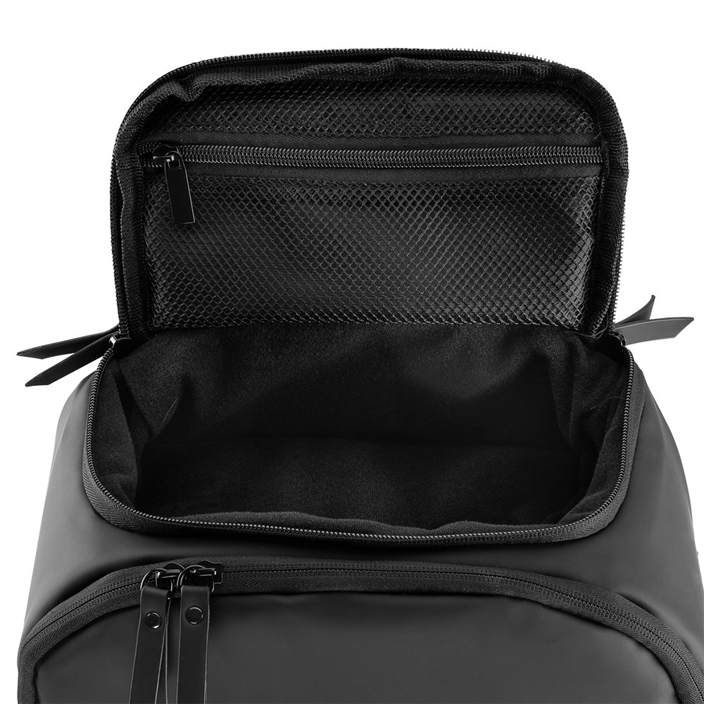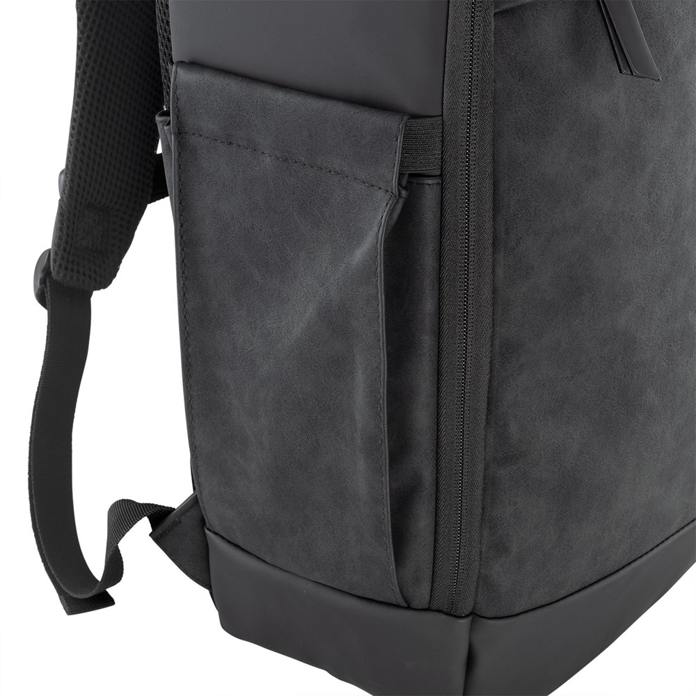Dieser Rucksack besteht aus 1mm mattem PU, 0,8mm two-tone Velours-PU und rPET Innenfutter, was ihn robust und umweltfreundlich macht. Mit einem Volumen von 18 Litern bietet er großzügigen Stauraum und zahlreiche durchdachte Details. Das Hauptfach mit 2-Wege-Reißverschluss enthält eine große Mesh-Innentasche sowie eine weitere Reißverschluss-Innentasche. Ein gepolstertes Laptop-Fach schützt Geräte bis 15", und das Frontfach bietet zusätzlichen Stauraum. Das 2-Wege-RV-Schnellzugriffs-Fach mit Mikrofaser-Innenfutter und RV-Meshfach sorgt für eine organisierte Aufbewahrung. Zusätzlich verfügt der Rucksack über ein Geheimfach am Rücken, flexible Seitentaschen für Flaschen, eine Trolleyschlaufe, verstellbare Schultergurte mit Reißverschlussfach, einen verstellbaren Brustgurt, einen Tragegriff und ein Air-Tag-Fach.