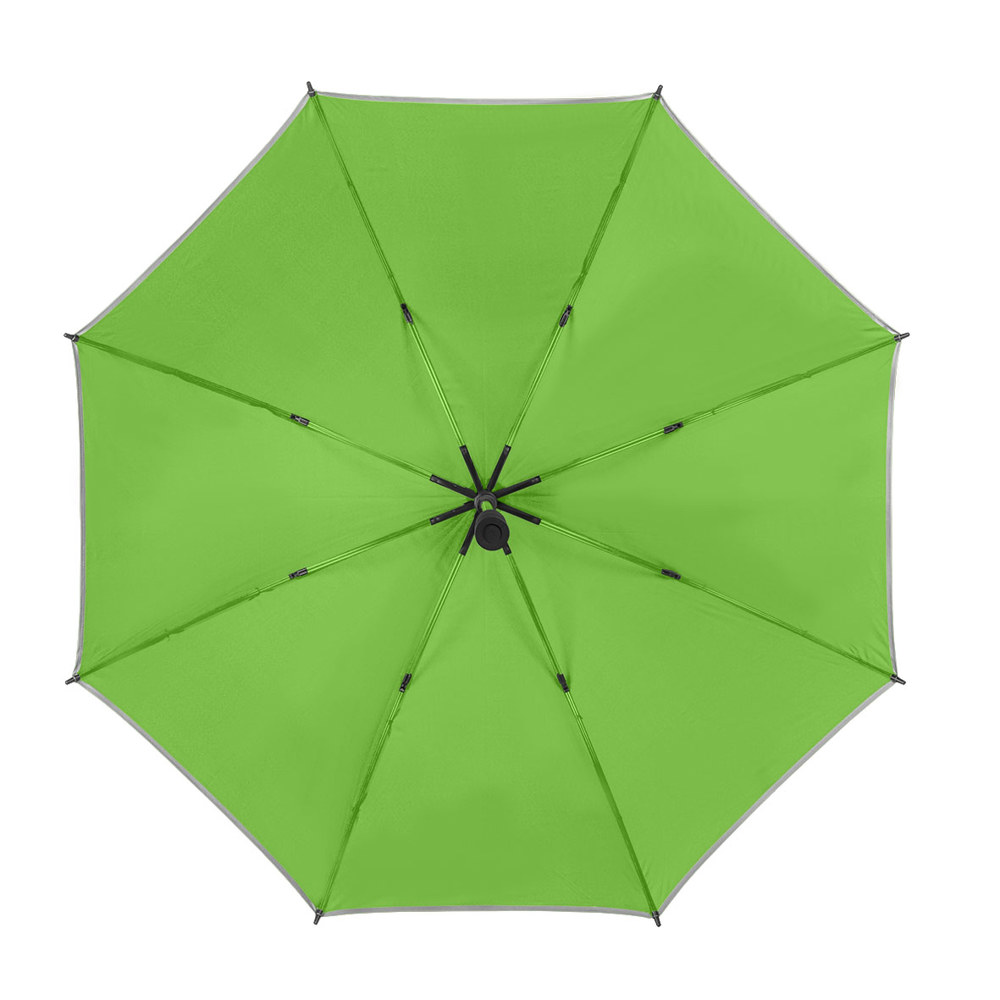 Der Gasschirm hat eine Länge von ca. 93 cm (geschlossen) und lässt sich automatisch öffnen. Er besteht aus 8 Segmenten und einem 14 mm Fiberglasschaft in der Farbe der Bespannung. Mit 68 cm langen Doppel-Fiberglasspeichen in der gleichen Farbe wie die Bespannung bietet der Schirm hohe Stabilität. Ausgestattet mit einer Windproof-Funktion trotzt er auch stärkeren Winden. Der PU-beschichtete, gerade Handgriff mit Farbakzenten in der Farbe der Bespannung sorgt für einen komfortablen Halt. Eine Doming-Veredelung im Griff ist möglich.