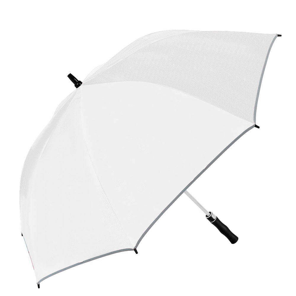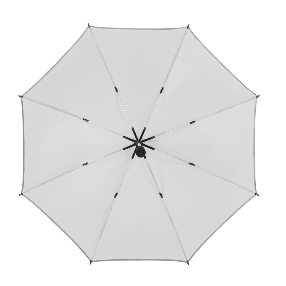 Der Gasschirm hat eine Länge von ca. 93 cm (geschlossen) und lässt sich automatisch öffnen. Er besteht aus 8 Segmenten und einem 14 mm Fiberglasschaft in der Farbe der Bespannung. Mit 68 cm langen Doppel-Fiberglasspeichen in der gleichen Farbe wie die Bespannung bietet der Schirm hohe Stabilität. Ausgestattet mit einer Windproof-Funktion trotzt er auch stärkeren Winden. Der PU-beschichtete, gerade Handgriff mit Farbakzenten in der Farbe der Bespannung sorgt für einen komfortablen Halt. Eine Doming-Veredelung im Griff ist möglich.