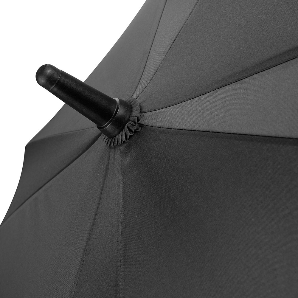 Dieser hochwertige Regenschirm verfügt über eine Bespannung aus 190T rPET-Pongee und einen Durchmesser von ca. 130 cm. Im geschlossenen Zustand misst er ca. 99 cm. Mit einer praktischen Automatikfunktion öffnet er sich schnell und einfach. Dank der Windproof-Funktion bleibt der Schirm auch bei windigen Bedingungen stabil. Der gerade schwarze Griff aus Kunststoff mit PU-Beschichtung und die Kunststofftips und -spitze in Schwarz runden das elegante Design ab.