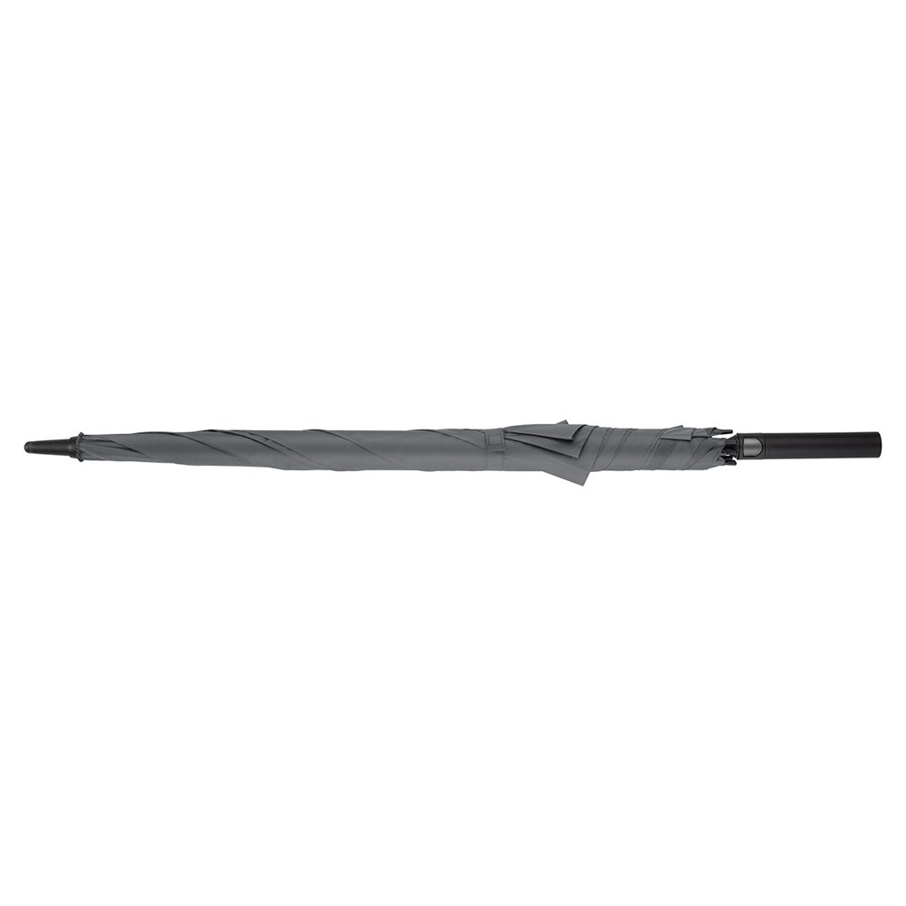Dieser hochwertige Regenschirm verfügt über eine Bespannung aus 190T rPET-Pongee und einen Durchmesser von ca. 130 cm. Im geschlossenen Zustand misst er ca. 99 cm. Mit einer praktischen Automatikfunktion öffnet er sich schnell und einfach. Dank der Windproof-Funktion bleibt der Schirm auch bei windigen Bedingungen stabil. Der gerade schwarze Griff aus Kunststoff mit PU-Beschichtung und die Kunststofftips und -spitze in Schwarz runden das elegante Design ab.