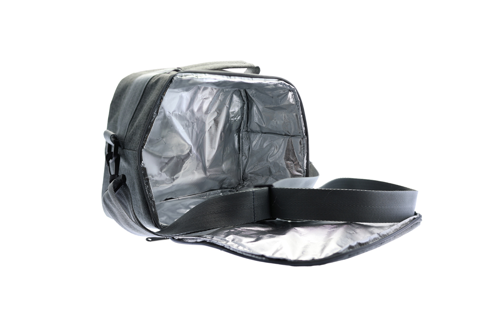 Isotherme Tasche aus meliertem Wulong-Gewebe RPET. Kompatibel mit all unseren Bento-Modellen. Isolierende Schicht mit 3 mm Dicke. Schulterriemen. Möglichkeit, eine Visitenkarte einzufügen. Verstärkter und gepolsterter Griff für besseren Halt. Reißverschluss. Fassungsvermögen: 8 L.