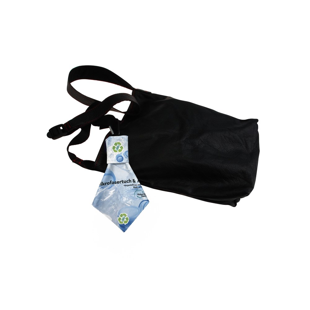 RPET Mikrofasertuch Anhänger mit Karabiner. Hergestellt aus recycelten PET Flaschen, GRS Zertifiziert Mikrofaser Reinigungstuch für Brillen, Handy, Laptop-, iPad oder TV-Displays. Mikrofaser ( 70 % Polyester + 30 % Nylon) Einfaches, ökologisches Reinigen ohne zusätzlichen Einsatz von Reinigungsmitteln. Ein praktischer Helfer mit großer Werbefläche.