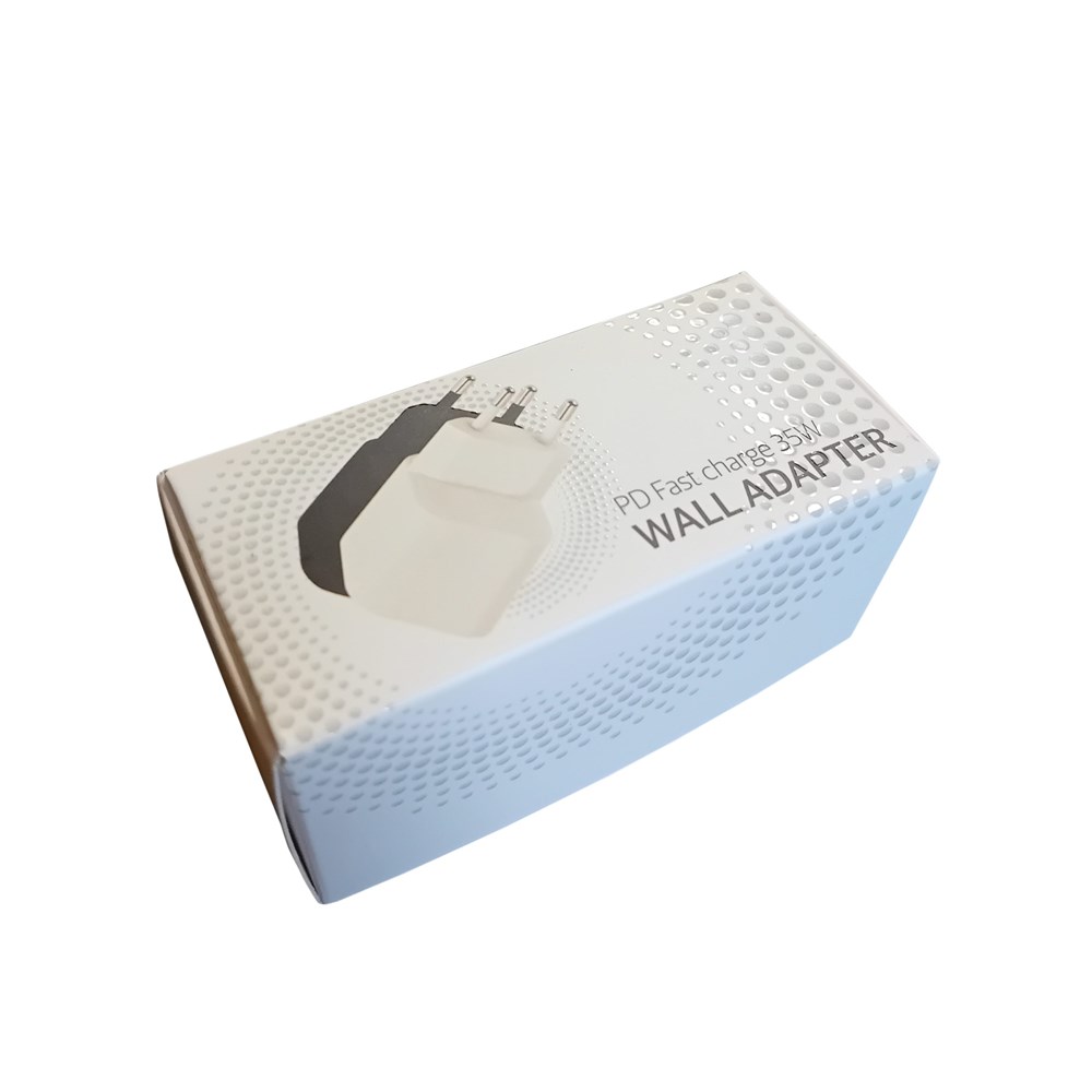 PD Fastcharge Adapter High Speed 35 Watt TÜV GS Zertifikzierte Qualität USB C und USB A 3.0 Input:100-240V 50/60 Hz 1.0A Type-C Output:5.0V 3.0A 15.0W Max or 9.0V 3.0A 27.0W Max or 12.0V 2.92A 35.0W Max or 15.0V 2.33A 35.0W Max or 20.0V 1.75A 35.0W Max or PPS1:3.3-11.0V 3.0A 33.0W Max or PPS2:3.3-16.0V 2.0A 32.0W Max USB-A Output:5.0V 3.0A 15.0W Max or 9.0V 3.0A 27.0W Max or 12.0V 2.25A 27.0W Max or 20.0V 1.35A 27.0W Max Type-C&USB-A Output: 5.0V 3.0A 15.0W Max Einzeln verpackt im weißen Displaykarton