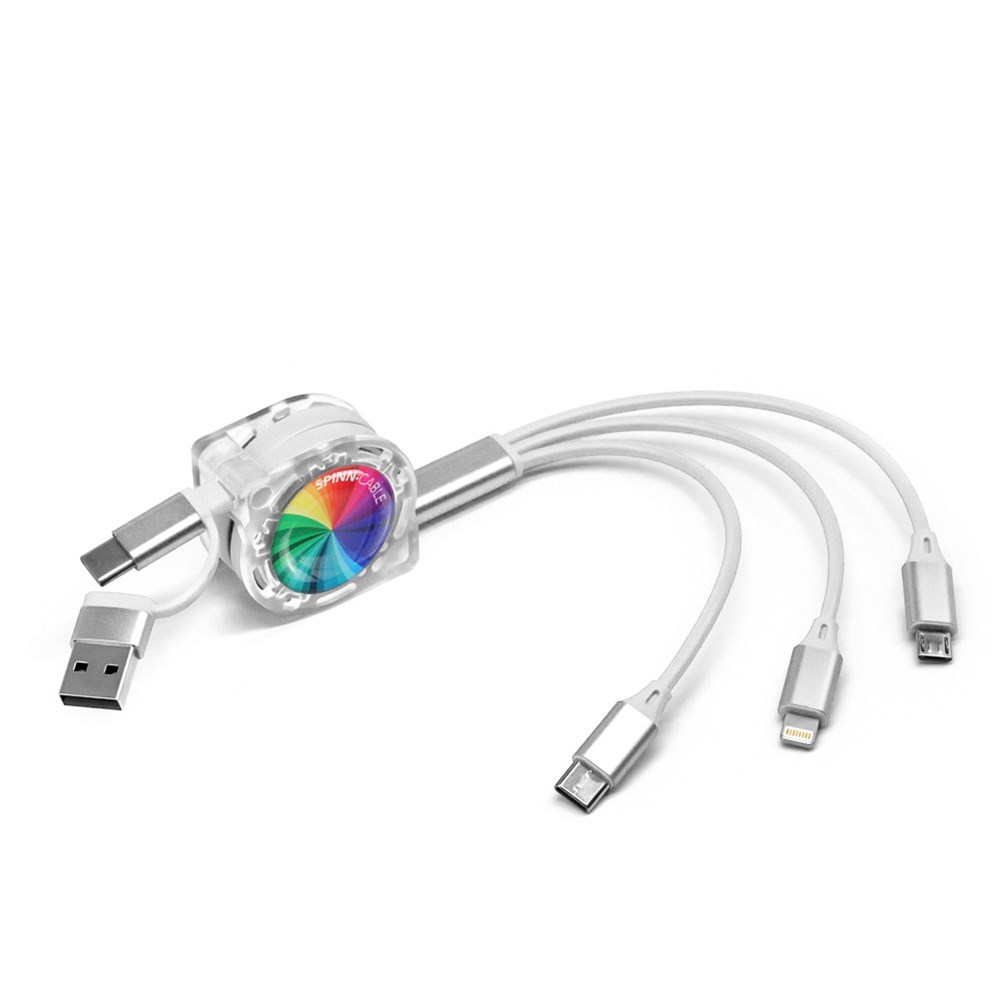 Ladekabel mit Spule ca. 100 cm lang mit hochwertigen Alu USB-A + Type C auf iPhone Lightning, Micro USB und Type-C Anschlüsssen