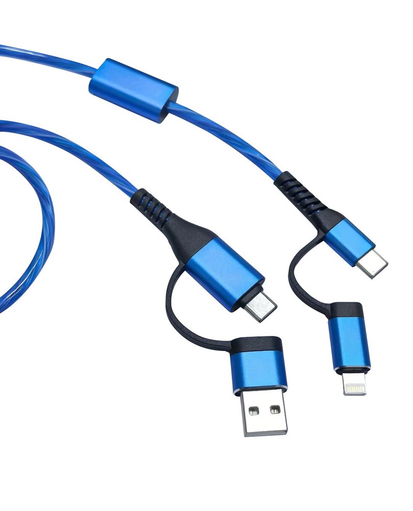Exklusiver Hingucker! Ladestand am Stromfluss erkennbar. Das LED Kabel zeigt den jeweiligen Ladestatus über die LED-Bewegung im Kabelmaterial. Unser ALU 4 in 1 FLOW LED Ladekabel. mit Metall Steckern ist ca. 100 cm lang. High End ALU USB Type-C Stecker mit Adapter auf Type A Stecker auf Type-C Stecker mit Adaptern für iPhone Lightning. Mit schwarzem Kabel Organizer. Output bis ca. 3A Quickcharge Einzelverpackt im schwarzen Geschenkkarton. Patentiert in den USA, Schweden und EU