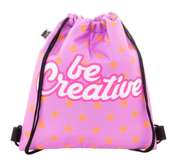 Individuelle Kühltasche für Kinder mit Kordelzug, hergestellt aus 600D RPET-Polyester mit Aluminium-Polsterung. Mit vollflächigem Sublimationsdruck. Mit RPET-Label. Mindestmenge: 25 Stk.