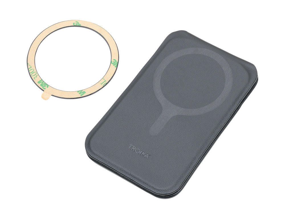 Kartenetui MagSafe, Stretchfach für 2-5 Karten, Schlüsselfach, Fach für 1 Kreditkarte im Inneren, Fach für Geldscheine, magnetische Befestigung durch N52 Magnet am Smartphone, Aufstellfunktionen für horizontales und vertikales Aufrichten des Smartphones, zusätzlicher selbstklebender MagSafe Metallring mit 3M Klebefläche zur individuellen Befestigung, z.B. an allen gängigen Smartphones, Hüllen, Notizbüchern, etc., 100% PU, Metall, Polyurethan, schwarz