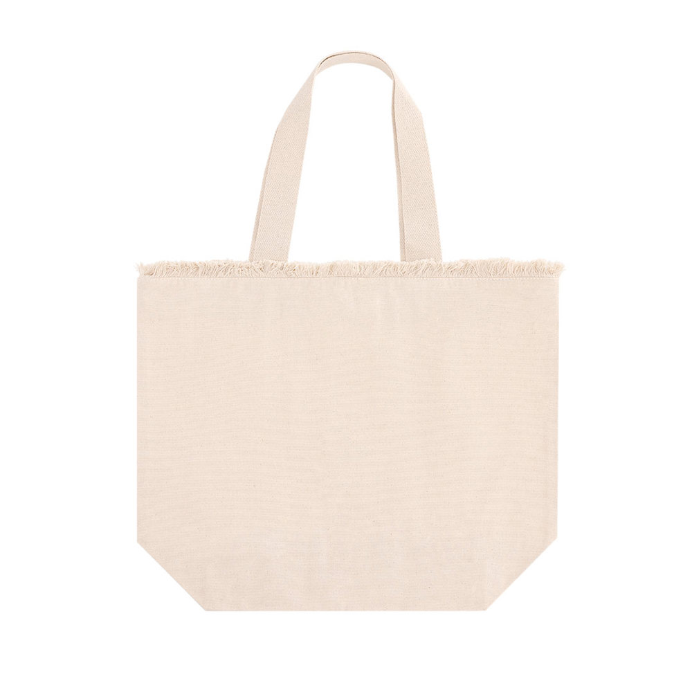 Tasche im Fransen-Stil, hauptsächlich aus 320 g/m2 Baumwolle gefertigt. Mit praktischem und modernem Design, beinhaltet verstärkte lange Griffe. Enthält einen Reißverschluss für zusätzliche Sicherheit.