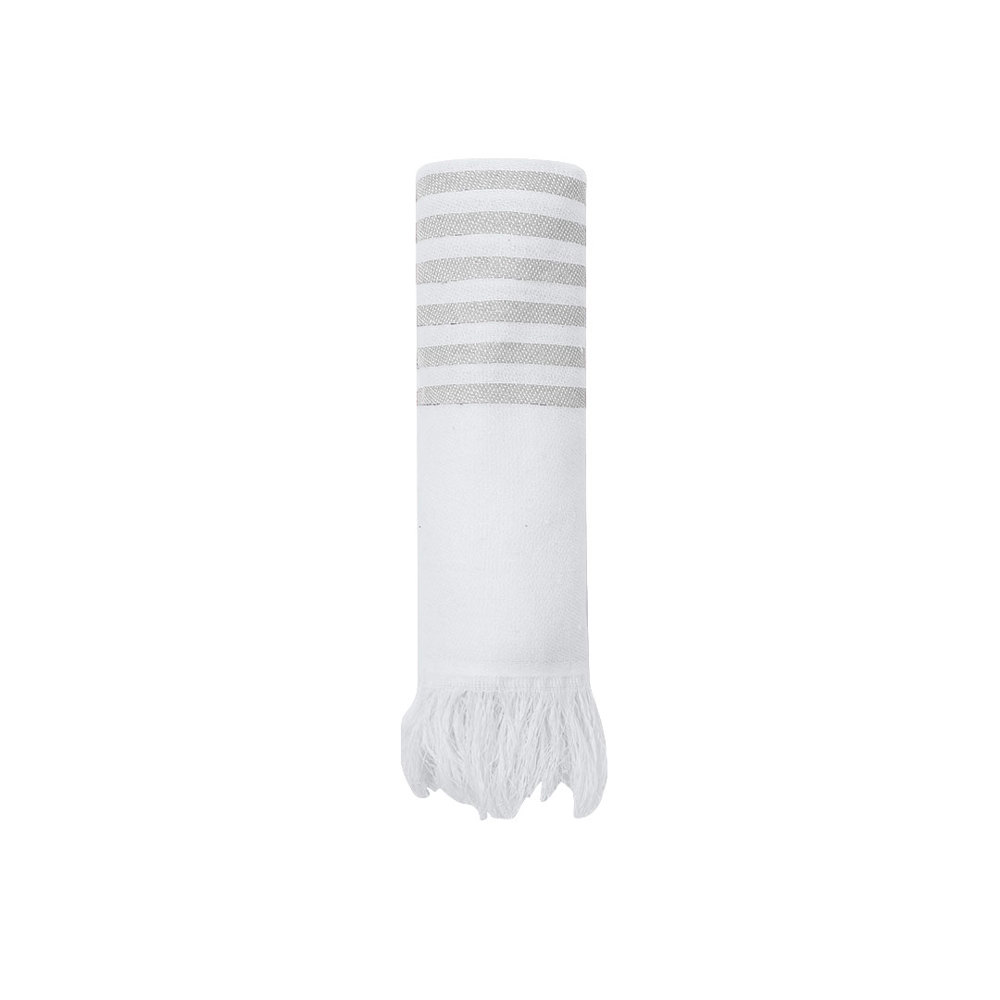 Weicher Pareo-Handtuch von 3000 g/m², gefertigt aus einer Kombination aus recycelter Baumwolle und SEAQUAL-Recycling-Polyester.Sein Design zeigt einen weißen Grund mit farbigen Streifen und ist mit auffälligen Fransen an den Enden dekoriert.Enthält ein Etikett mit SEAQUAL-Design, das seinen nachhaltigen Ursprung und seinen Beitrag zur Reinigung der Ozeane zertifiziert. Die SEAQUAL Initiative arbeitet mit Partnern und Behörden zusammen, um unsere Ozeane zu reinigen. Die Meeresabfälle von unseren Stränden, Böden und Oberflächen der Ozeane, Flüsse und Ästuare werden durch Säuberungsprogramme gesammelt. Danach werden sie in verschiedene Materialtypen sortiert und die Kunststoffanteile werden gereinigt und in RECYCELTES MEERESKUNSTSTOFF umgewandelt, eine vollständig nachvollziehbare Rohstoffbasis, die nachhaltige und inspirierende Produkte schafft. Wenn du Produkte mit RECYCELTEM MEERESKUNSTSTOFF wählst, hilfst du, unsere Ozeane zu reinigen.Gemeinsam für einen sauberen Ozean.