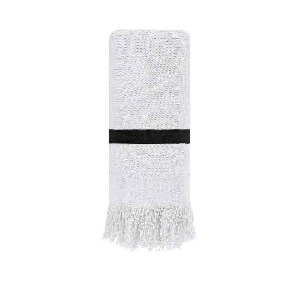 Weiches Handtuch aus Baumwolle von 290 g/m2. Sein Design zeichnet sich durch elegante Fransen an den Enden aus und umfasst ein praktisches elastisches Band