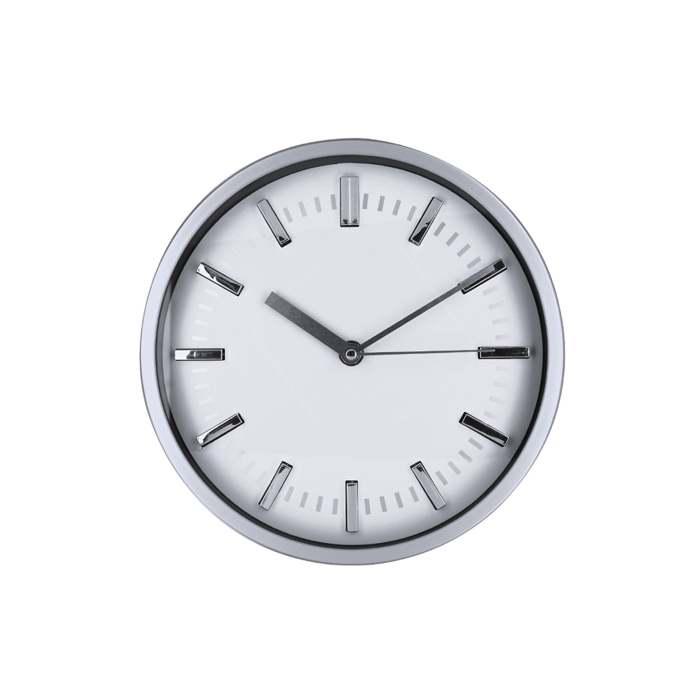 Wanduhr mit Aluminium- und Glasstruktur. Die Ziffern sind durch chromierte Stundensymbole und Viertel in Silber hervorzuheben und bieten einen stilvollen und funktionalen Look.Batteriebetrieb (1xAA nicht enthalten).