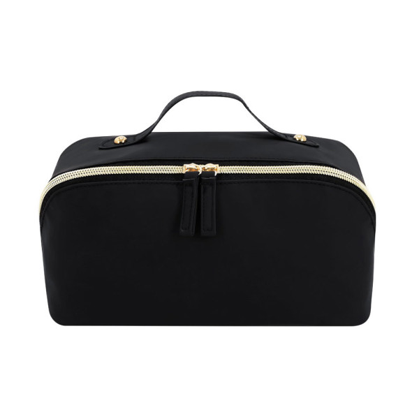 Necessaire aus weichem PU mit Hauptfach von großer Öffnung. Mit passenden PU-Ziehband und gelbem Reißverschluss. Innen mit doppeltem Fach und zusätzlichem Reißverschluss-Tasche.