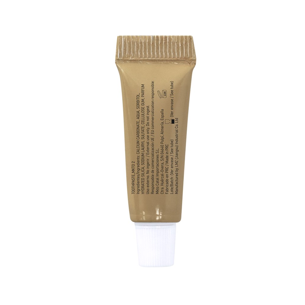 Zahnpflegeset mit Zahnbürste und Zahnpasta. Inhalt:Zahnbürste aus Bambus.Zahnpasta in einer 3 g-Tube mit Schraubverschluss.In natürlichen Farben und präsentiert in einer einzelnen Verpackung aus Recyclingpapier.Materialien wie Bambus fördern die Verwendung natürlicher Rohstoffe und reduzieren die Schadstoffemissionen. Zudem stammt der Bambus von einer sehr stabilen und vielseitigen Pflanze, die schnell wächst und sich regeneriert, was ihn zu einer hervorragenden Alternative zur Verwendung von traditionellem Holz macht.