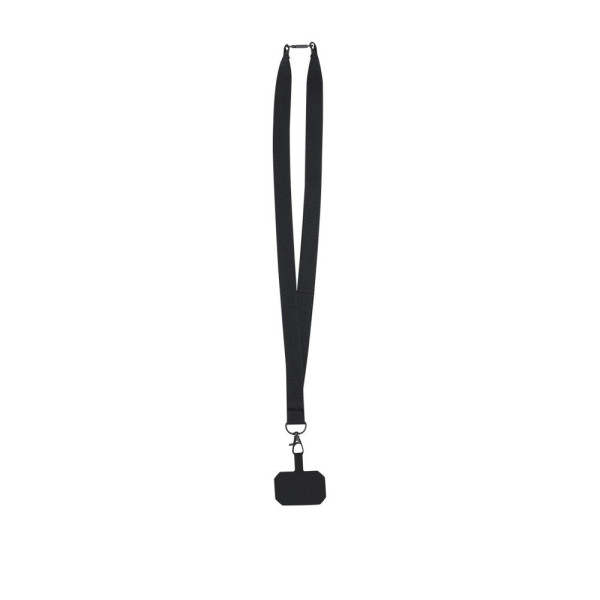 Original Lanyard Halter aus weichem Polyester, anpassbar durch das Transportzubehör, um zwischen der Hülle und dem Smartphone zu positionieren. Passendes Trageband, drehbarer schwarzer Karabiner und verfügt über ein Sicherheitszubehör für den Hals.