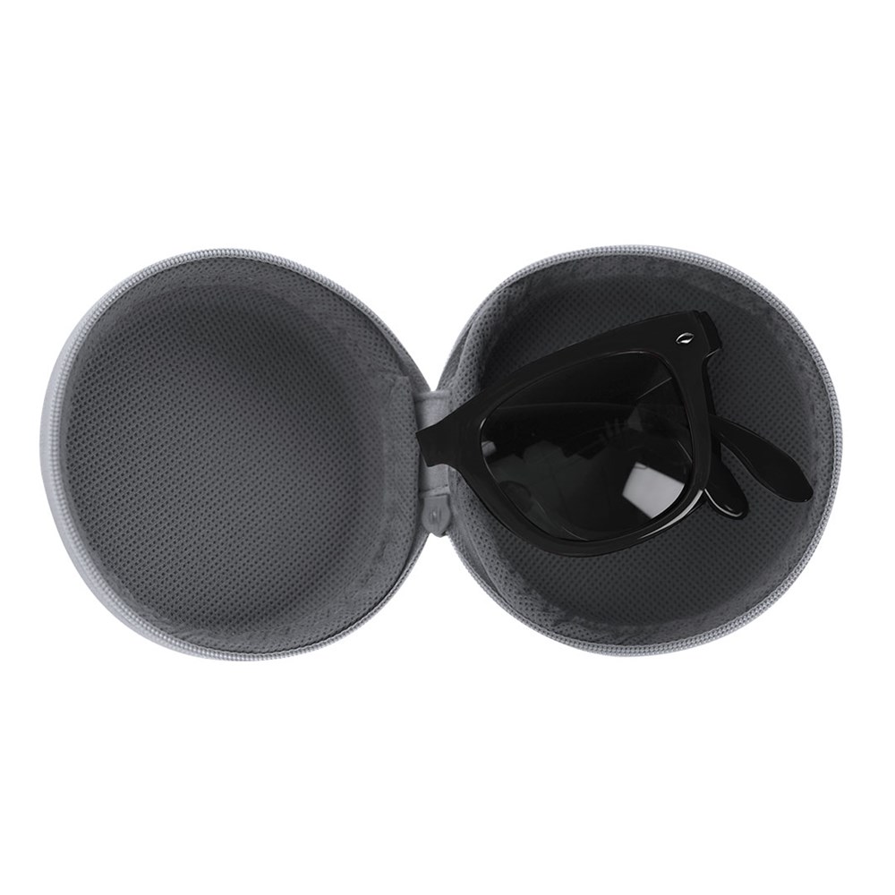 Faltbare Sonnenbrille mit UV400-Schutz, gefertigt aus recyceltem PC. Widerstandsfähiger Rahmen mit elegantem Design und glänzendem Finish in Schwarz. Die Gläser sind schwarz, um Stil zu garantieren. In einem weißen, runden Etui mit Reißverschluss verpackt.