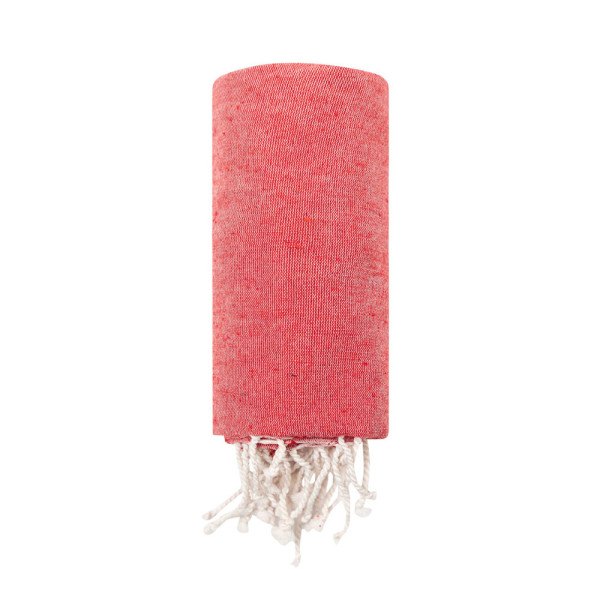 Handtuch aus 180 g/m2 in Kombination aus recycelter Baumwolle und RPET. Das RPET-Material wird aus recyceltem Kunststoff hergestellt, um die Wiederverwendung von Kunststoffabfällen zu fördern und zur Nachhaltigkeit des Planeten beizutragen.