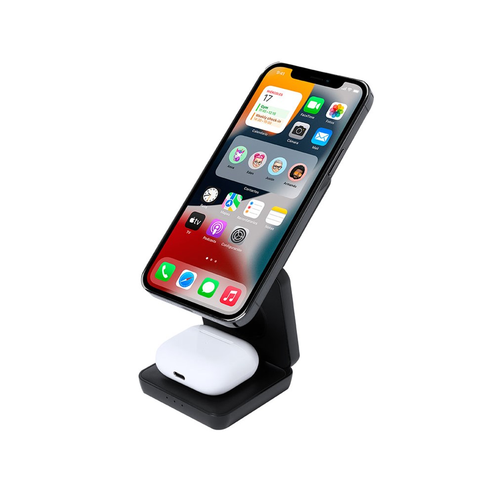 4-in-1 tragbares, magnetisches kabelloses Ladegerät mit 15 W, hergestellt aus recyceltem ABS (RABS). Entwickelt für das gleichzeitige Laden von Smartphone, Kopfhörern, Smartwatch und Halter. Ein All-in-One-Gadget: faltbar, tragbar, kompakt, sehr vielseitig und funktional im Design. Mit matter, gummierter Oberfläche. USB-Typ-C-Anschluss - Kabel inklusive -.RABS ist ein hochgradig recycelbarer Kunststoff mit hoher Widerstandsfähigkeit und zahlreichen Anwendungen, die ihn zu einer umweltfreundlichen Lösung machen.Hergestellt gemäß RoHS-Standards und erfüllt die folgenden Sicherheitsanforderungen:Überhitzungsschutz.Überlastschutz.Sicherheitssystem zur Kurzschlussvermeidung.