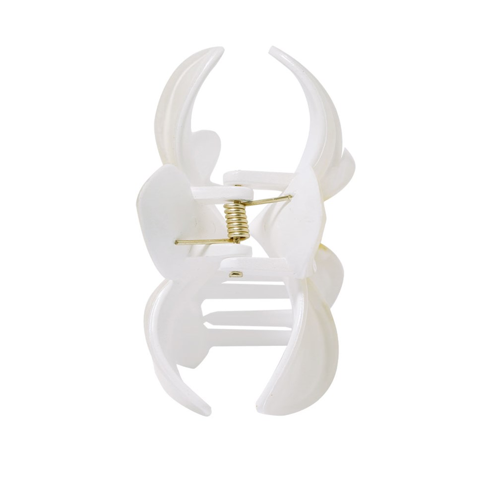 Haarspange mit originelles Design in Form einer weißen Blume mit gelbem Zentrum. Verfügt über 8 strapazierfähige Zähne, die einen bequemen und sicheren Halt gewährleisten.