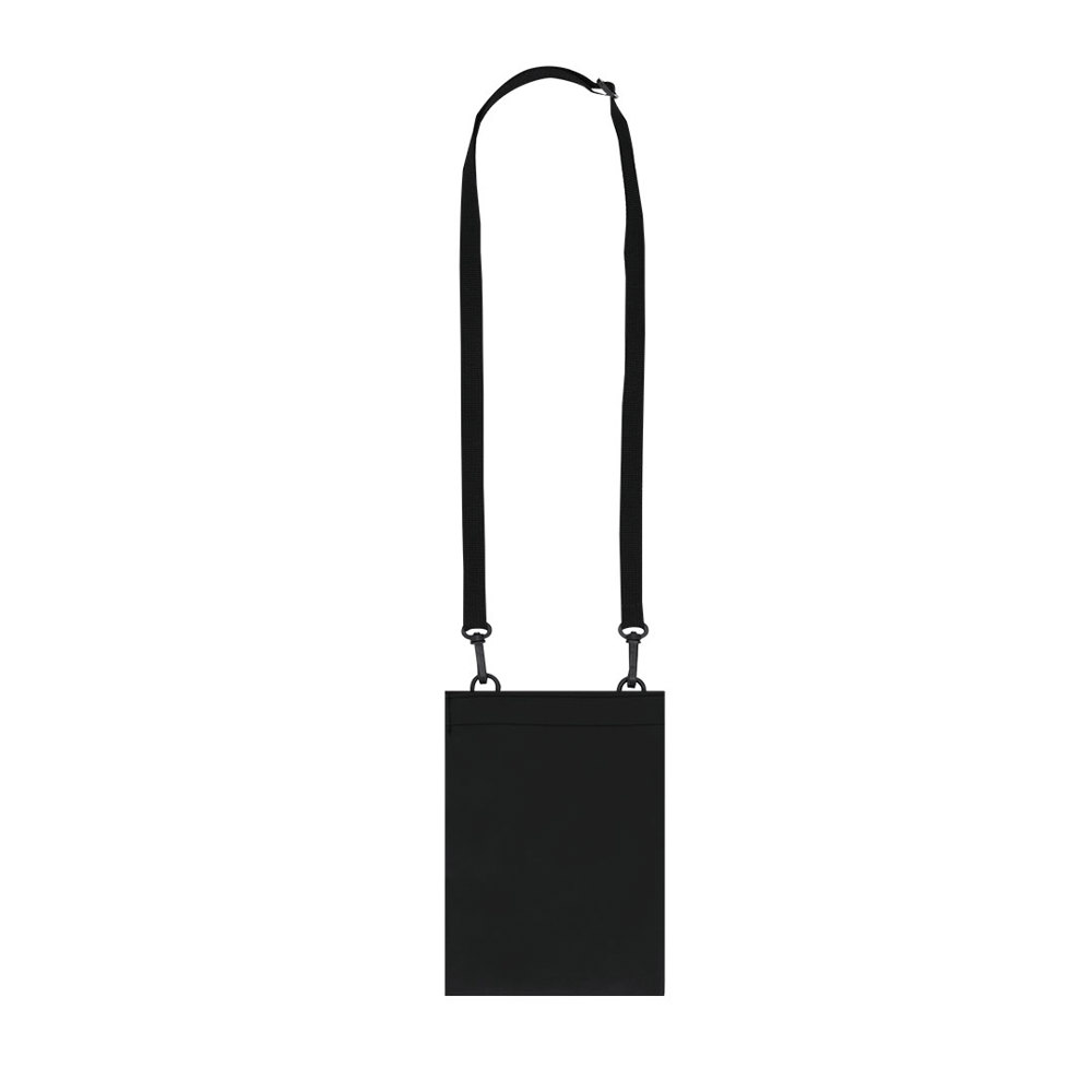 Stiftemäppchen aus weichem PU. Hauptfach mit Klettverschluss und weit öffnendem Futter. Beinhaltet verstellbare flache Träger mit drehbarem Mosqueton.