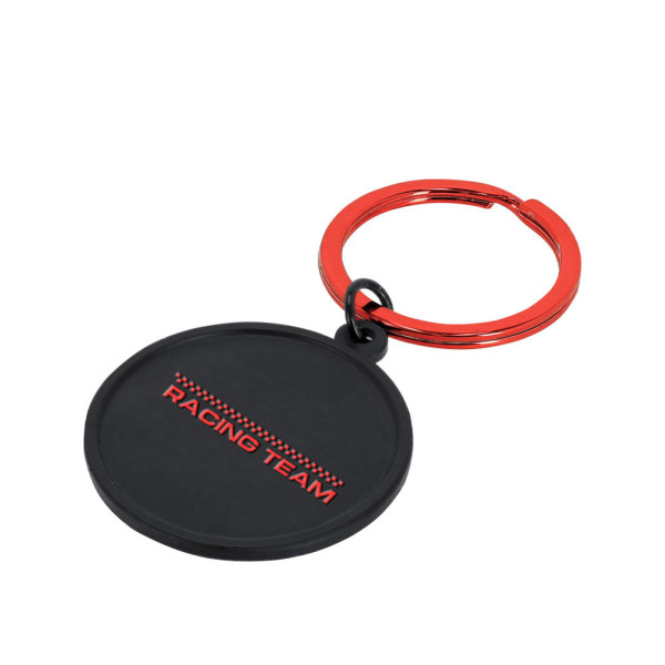 Schlüsselanhänger aus Aluminium mit rundem Design in Schwarz. Ideal für Lasergravur mit farbigem Finish auf beiden Seiten des Anhängers. Inklusive passendem Metallring für ein elegantes Ergebnis.