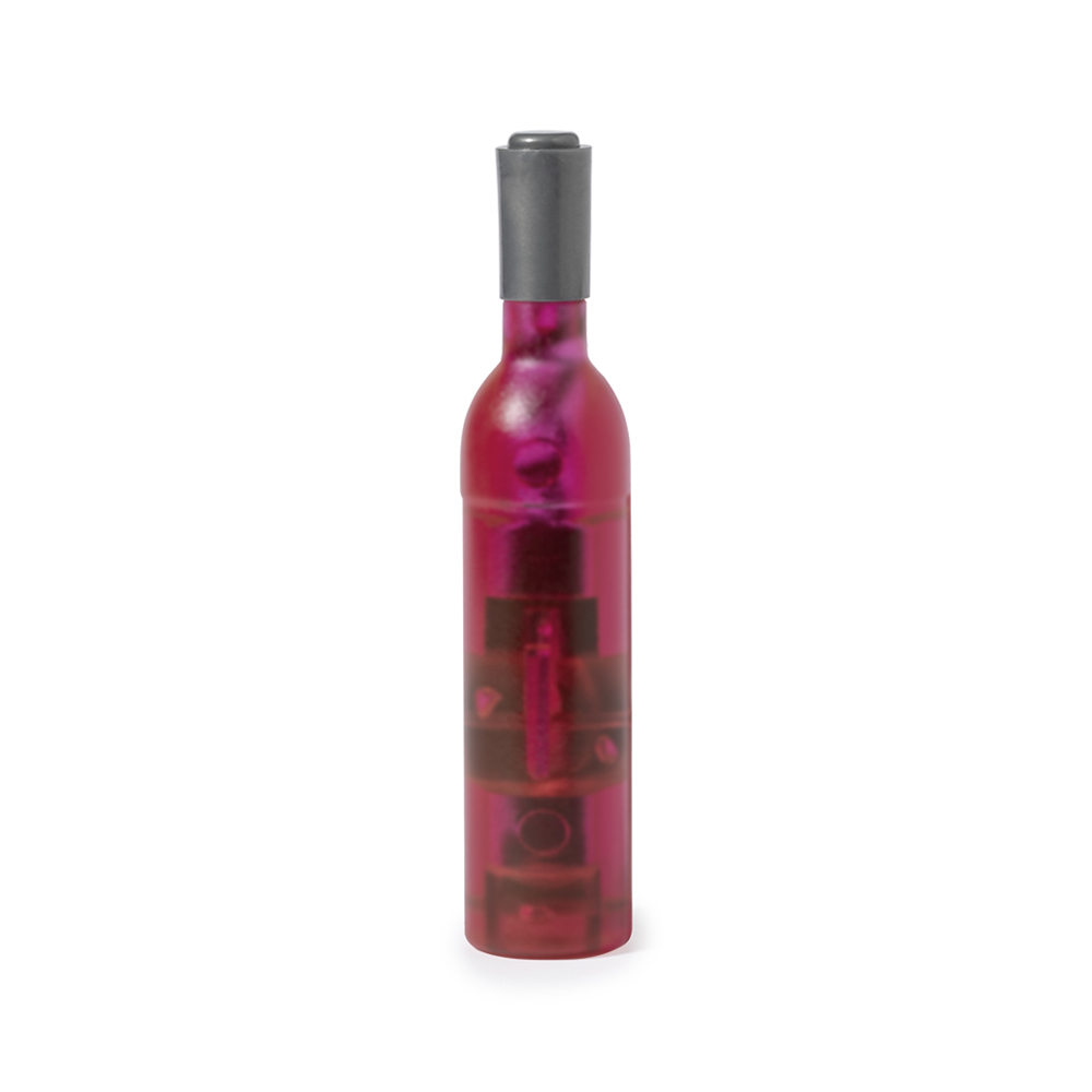 Lustiger magnetischer Korkenzieher in Form einer Weinflasche in weißer, roter und rosé Ausführung. Mit Körper in halbtransparenter Ausführung mit Flaschenöffner.