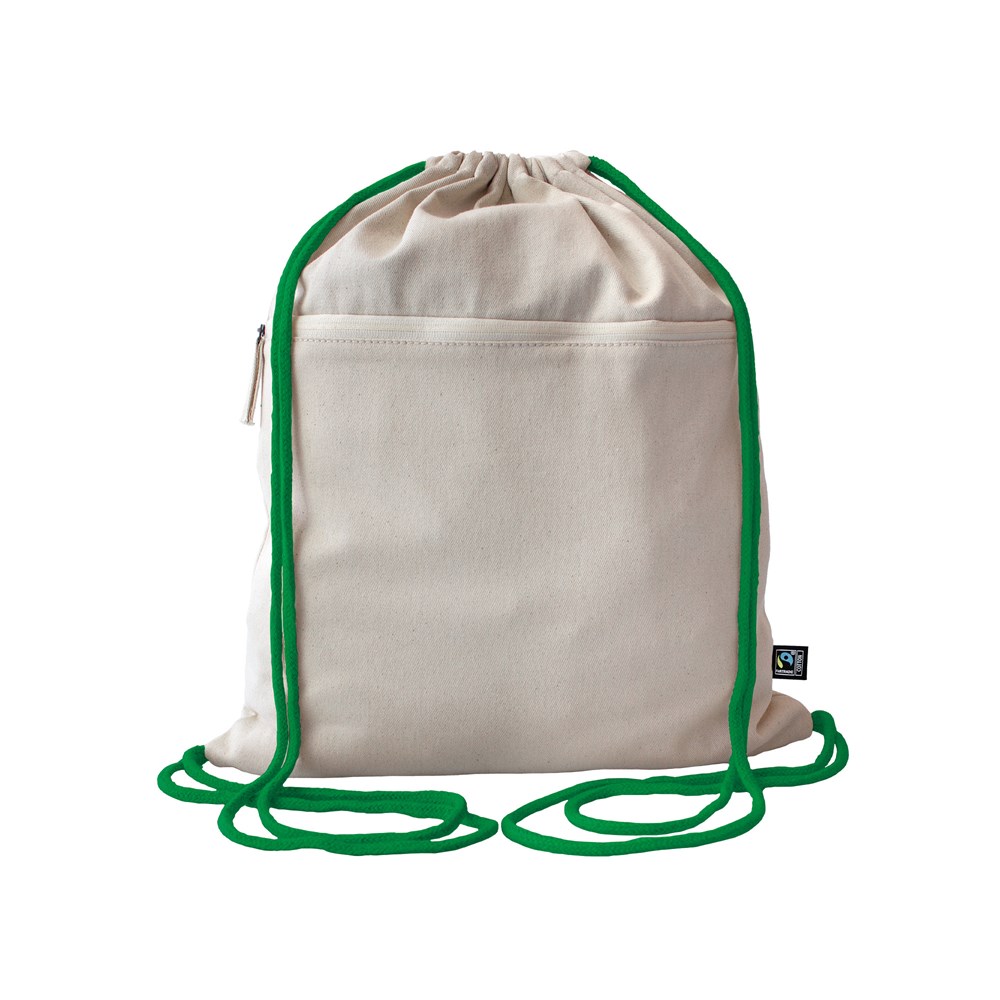 Fairtrade Baumwollrucksack Toni, Kordelfarbe green