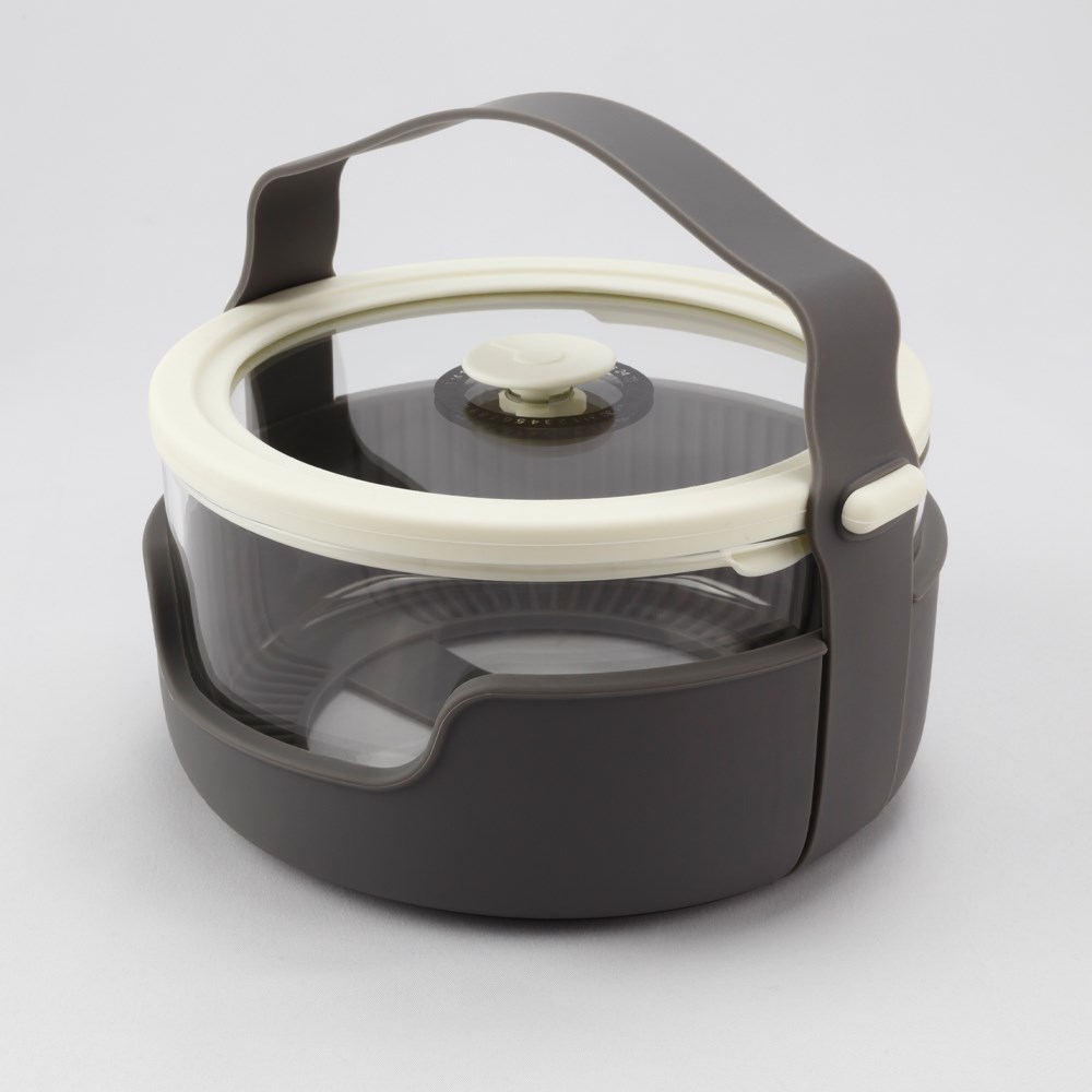 Robuste Lunchbox aus hitzebeständigem Borosilikatglas mit 650 ml Füllinhalt und Silikonhalterung. Hitzebeständig bis 200°C, gefriergeeignet bis -20°C, mit auslaufsicherer Silikondichtung. Perfekt für kleine Portionen im Büro, der Schule oder unterwegs. Anti-Rutsch-Boden, integrierte Datumsanzeige und Rezeptheft inklusive. Optional mit Logodruck einfärbig am Silikonträgerband, als Gravur am Glasdeckel oder auf dem Rezeptheft individualisierbar