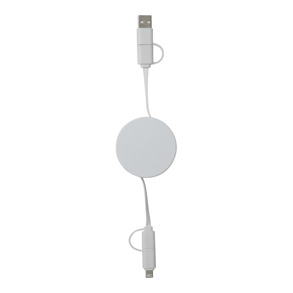 Lade- und Datenkabel TRANSFER ROUND, aufrollbar (Länge: ca. 92 cm): zum Aufladen von Smartphones, USB-betriebenen Geräten und Laptops (65 W Leistungsübertragung) sowie zum Übertragen von Daten, inkl. 2 Ladesteckern (USB Typ C, Kombistecker Micro-USB/Lightning®), kombinierter USB Typ A / Typ C Eingangsstecker, in Box