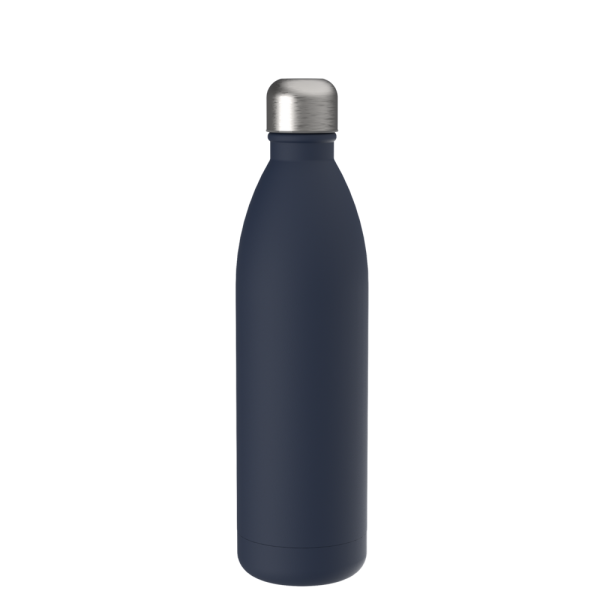 Die doppelwandige Thermo Trinkflasche fasst 750 ml und ist somit die größere Alternative zu unserem ursprünglichen Modell. Sie hält Ihre Getränke zuverlässig heiß oder kalt und besticht durch ihre besonders große, prominente Logofläche. Sie ist entweder mit navy-blauer, schwarzer oder weißer Pulverbeschichtung oder in Edelstahl matt silber mit Antifingerprint-Beschichtung erhältlich. Der Drehverschluss schützt vor dem Auslaufen.
